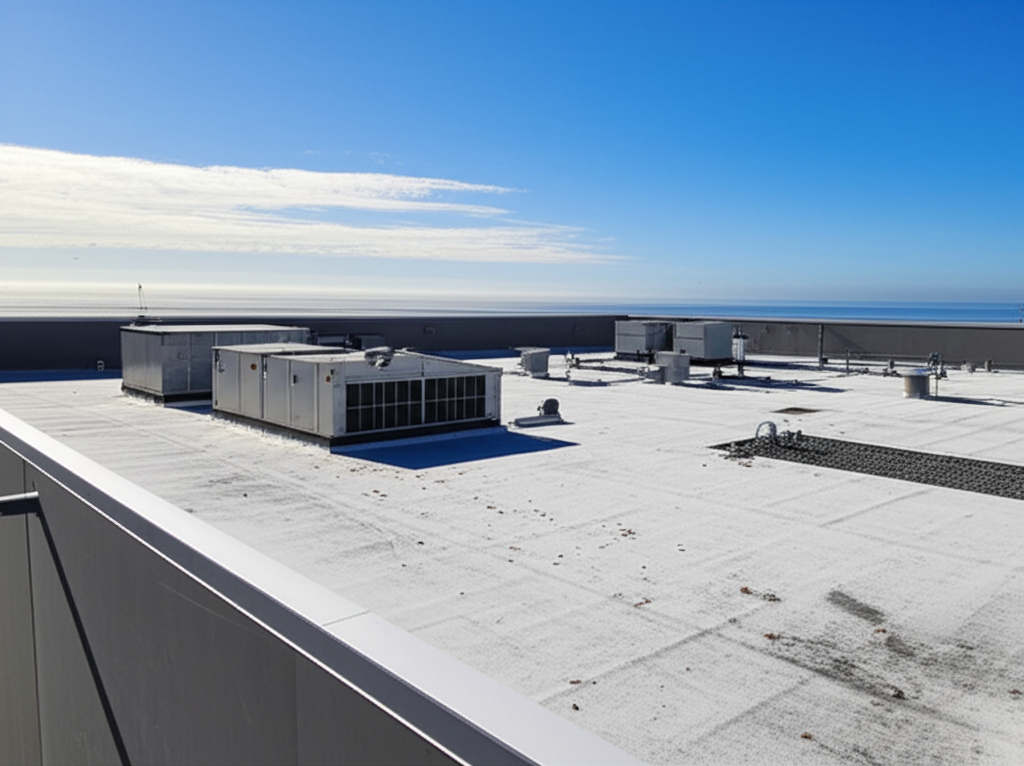 Heavy-duty roofing for manufacturing plants, industrial complexes, and specialized facilities requiring specific roofing standards.